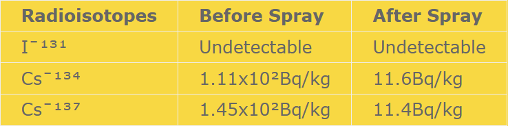 The soil radiation level were reduced after sprayed of [SAISEI] water. A confirmation by radiation-counter.