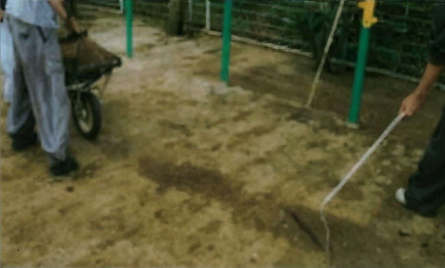 The contaminated soil on the ground was sprayed with [SAISEI] water